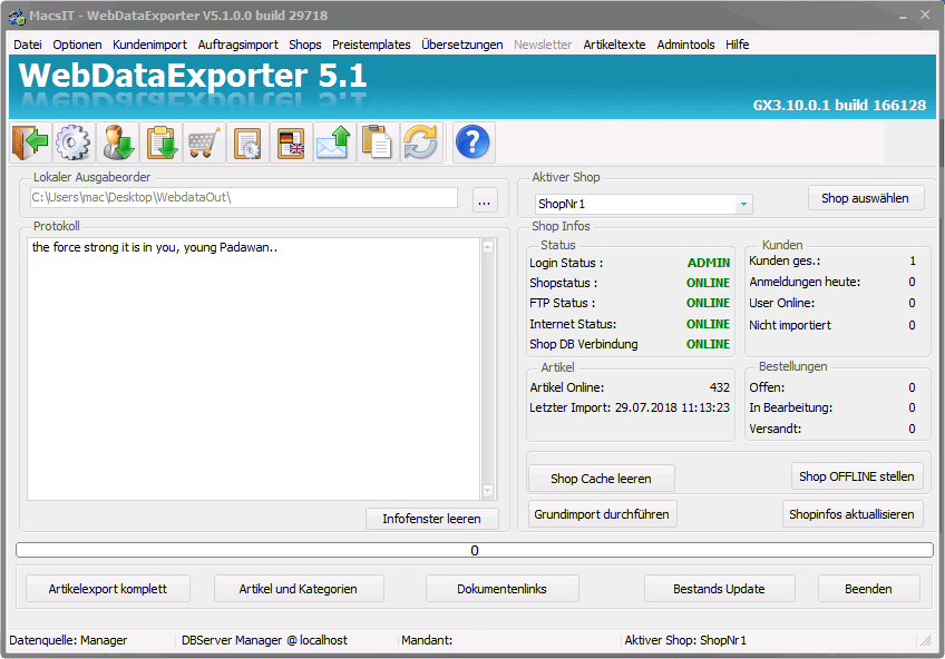 - nur Bestandsdatenexport zum schnellen Abgleich des Shops mit ERP